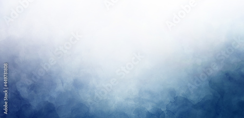 Wall mural : Blue watercolor border on white background, gradient texture and color in cloudy sky or foggy haze d