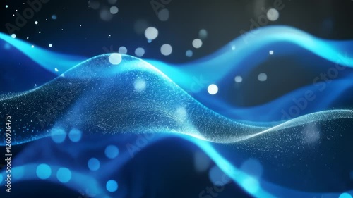 Wall mural blue wave abstract background with glowing particles for web design and modern technology