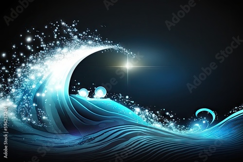 The watermark will not be included on Wall mural.: Blue wave background with shining light reflections and sparkles, created with generative ai