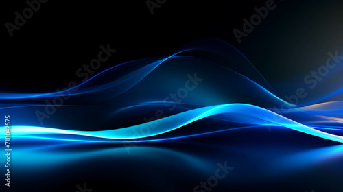Wall mural : Blue wave energy flow abstract design with light lines and fractal motion -