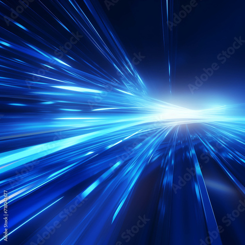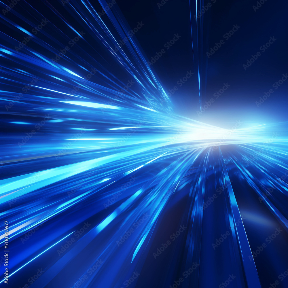 Wall mural blue wave energy flow abstract design with light lines and fractal motion.