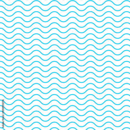 The watermark will not be included on Wall mural.: Blue wave repeat pattern - seamless pattern of curve wavy line isolated on white background - sea waves