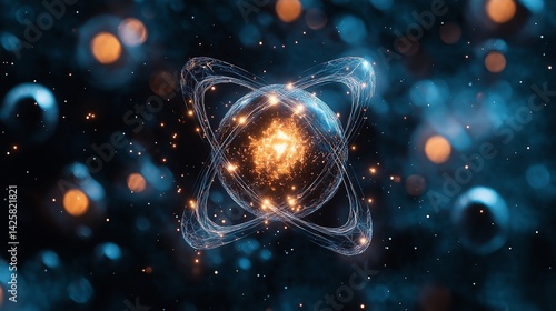 The watermark will not be included on Wall mural.: Blueprint of an atom showing electron shells,generative ai illustration