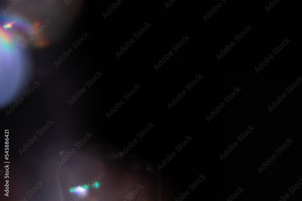 The watermark will not be included on Wall mural.: Blur colorful rainbow crystal light leaks on black background - defocused abstract multicolored retro