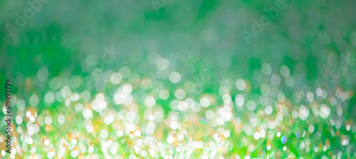 Wall mural blurred background of fresh green grass with dew drops in morning. background of environment. field