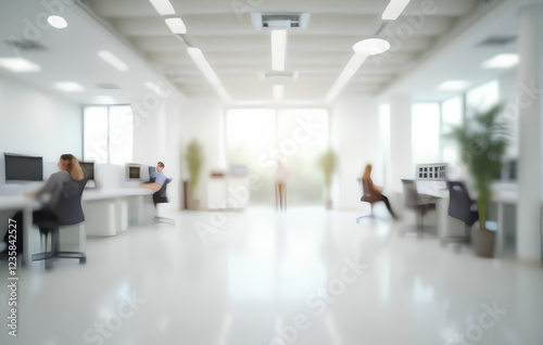 The watermark will not be included on Wall mural.: Blurred empty open space office - abstract light bokeh at office interior background for design -