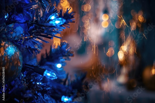 The watermark will not be included on Wall mural.: Blurred golden holiday lights creating an abstract textured backdrop