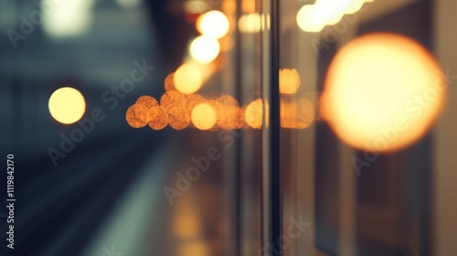 Wall mural : Blurred lights on train platform creating an abstract visual effect of modern transportation and urb