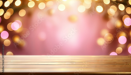 Blurred pink background with empty table and golden bokeh lightsWall mural