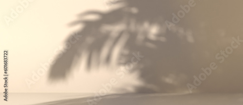 The watermark will not be included on Wall mural.: Blurred shadow of palm leaves on a wall - abstract minimal background for a product presentation - sum