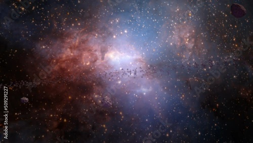 Wall mural : Blurred space scence galaxy exploration through outer space towards glowing milky way galaxy for abs