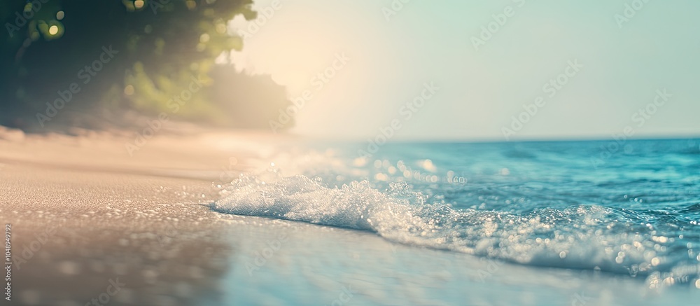 The watermark will not be included on Wall mural.: Blurred tropical beach with bokeh sunlight and waves creating an abstract background copy space for