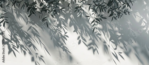 Wall mural blurry background featuring the abstract image of shadowy willow leaves on a white wall, ideal for a