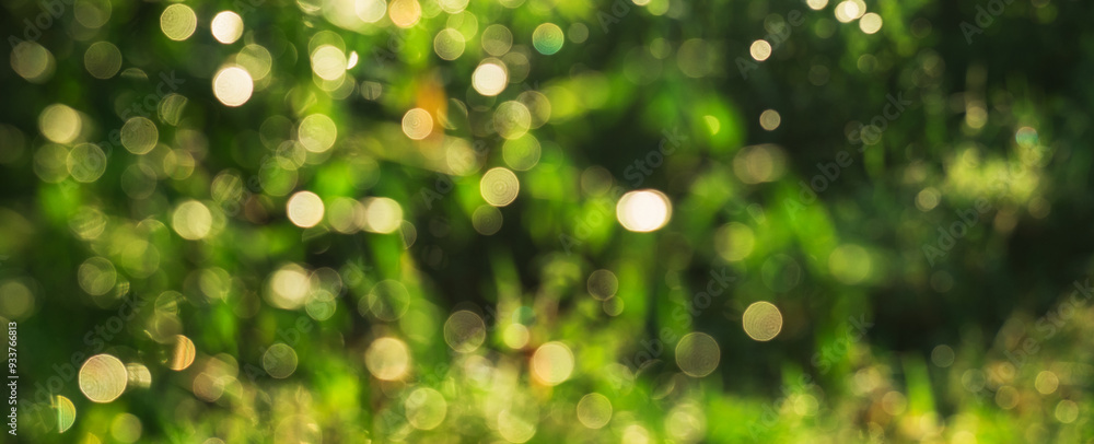 The watermark will not be included on Wall mural.: Blurry green field with a lot of grass and some trees