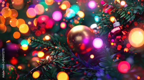 The watermark will not be included on Wall mural.: Blurry light effects and neon glow on festive decorations create a colorful abstract background patt