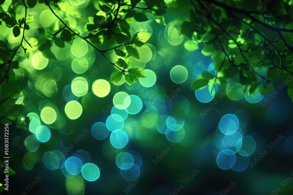 Bokeh circles in shades of green and blue create a captivating background effectWall mural