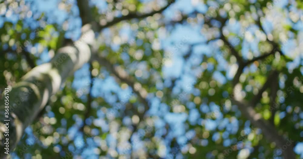 Bokeh view of tree bark from bottom under sunlightWall mural