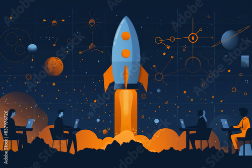The watermark will not be included on Wall mural.: Bootstrapping and business incubator with design a detailed flat design illustration of a startup ac