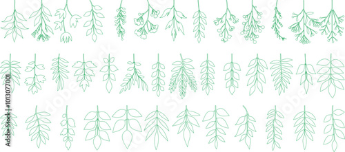 The watermark will not be included on Wall mural.: Botanical leaf line art vector featuring minimalist foliage illustrations - includes various leaf typ