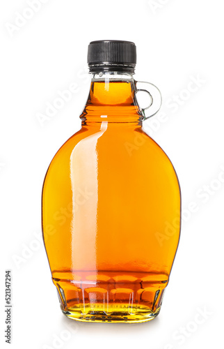 The watermark will not be included on Wall mural.: Bottle of maple syrup on white background