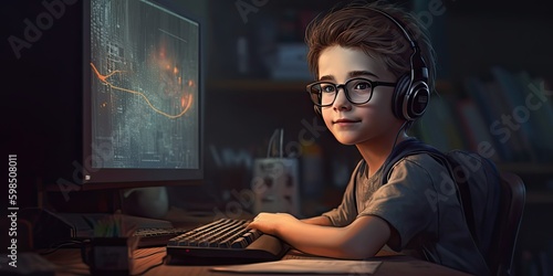 The watermark will not be included on Wall mural.: Boy in software developer illustration by generative ai