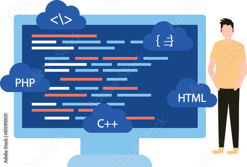 Wall mural boy programming software on monitor. - Wall murals Wall mural boy programming software on monitor. - Wall murals