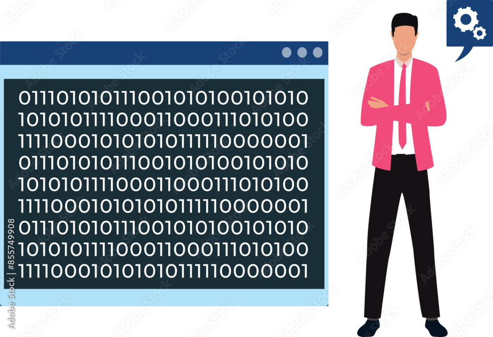 The watermark will not be included on Wall mural.: Boy standing with binary coding of web page -