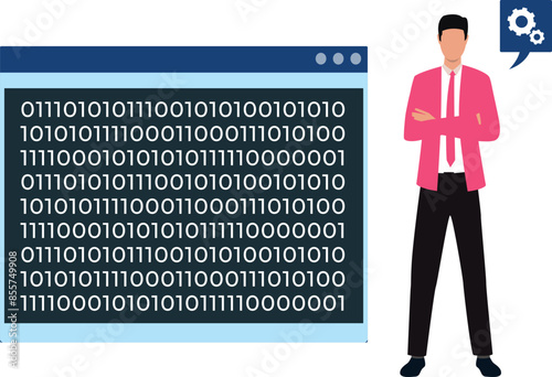 Wall mural boy standing with binary coding of web page. - Wall murals Wall mural boy standing with binary coding of web page. - Wall murals