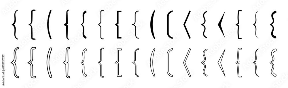 Wall mural bracket icon collection. quote box frame. black bracket set. set of text brackets design. icons vint