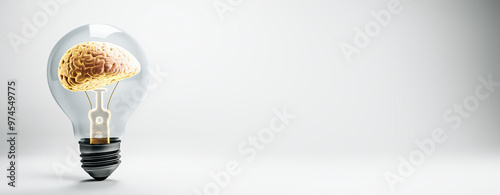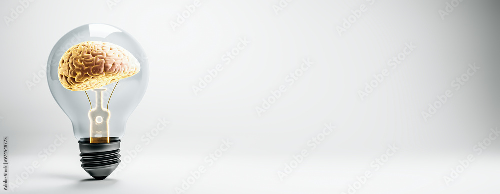 Wall mural brain inside lightbulb on a clean background. 3d rendering - Wall murals Wall mural brain inside lightbulb on a clean background. 3d rendering - Wall murals