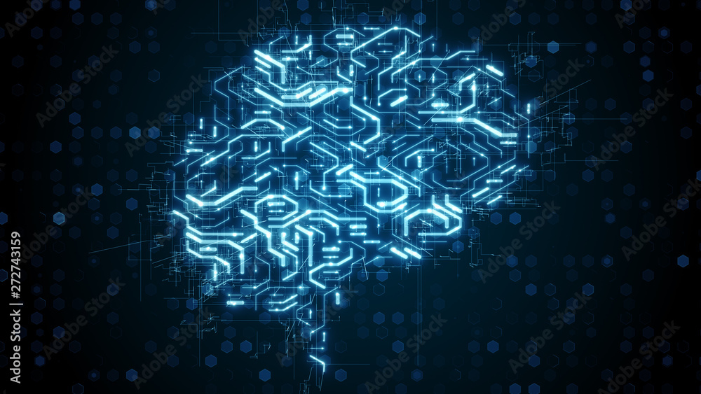 Wall mural brain network circuits board of a fututre computing technology system - conceptual 3d render graphic