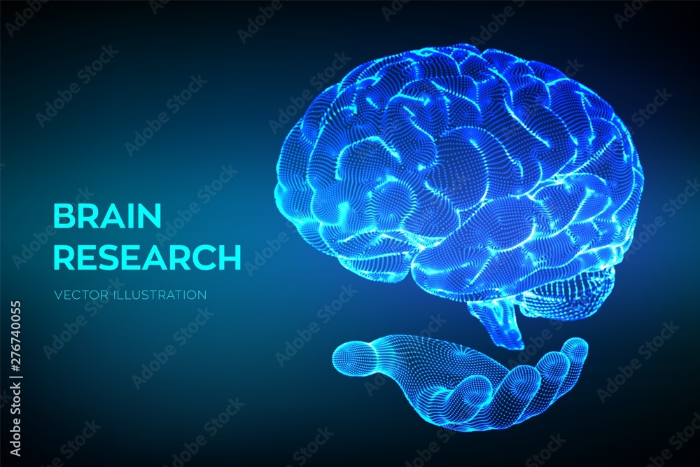 Wall mural brain. human brain research. 3d science and technology concept. neural network. iq testing, artifici