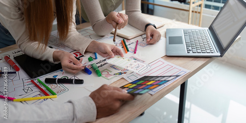 Wall mural : Brainstorm team of creative web graphic designer planning, group of mobile phone app developer team