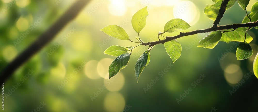 Wall mural branch and leaf of a tree are lovely in the forest as a background. with copy space image. place for