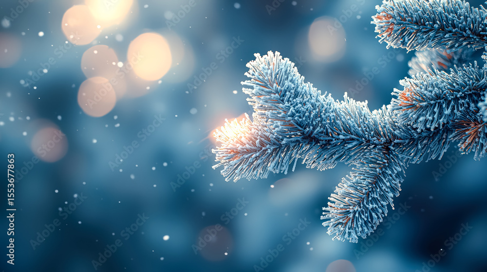 Wall mural branch of a tree covered in snow. the snow is falling and the branch is covered in ice - Wall murals Wall mural branch of a tree covered in snow. the snow is falling and the branch is covered in ice - Wall murals