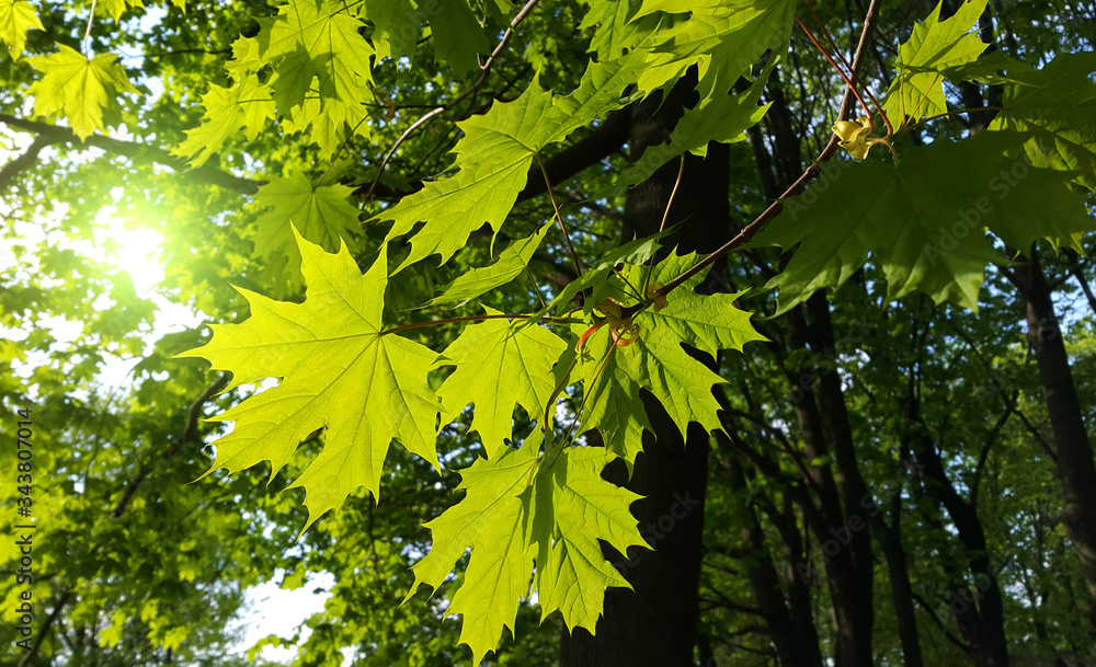 Wall mural branches with fresh green leaves of maple tree - Wall murals Wall mural branches with fresh green leaves of maple tree - Wall murals