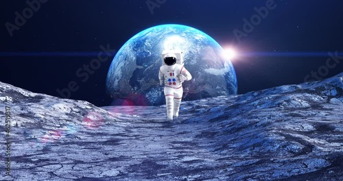 Wall mural brave astronaut running on a planet surface in slow motion. space and technology related 3d animatio - Wall murals Wall mural brave astronaut running on a planet surface in slow motion. space and technology related 3d animatio - Wall murals