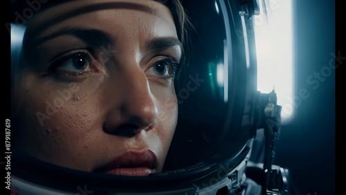 Wall mural : Brave astronaut sits in a spaceship while orbiting around the earth -