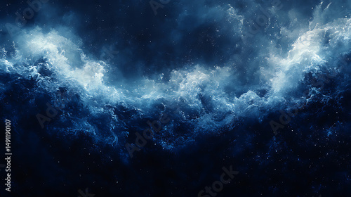 Wall mural : Breathtaking celestial landscape of cosmic clouds and distant stars in deep blue space