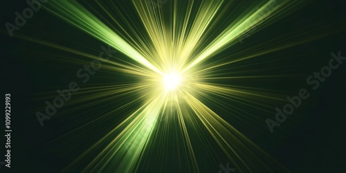 Wall mural : Bright, green and yellow light rays burst from a central point, creating a dynamic and energetic vis