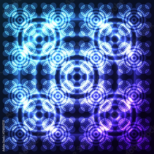 The watermark will not be included on Wall mural.: Bright, shining and glaring abstract pattern with circles - beautiful decorative rounds on dark cosmi