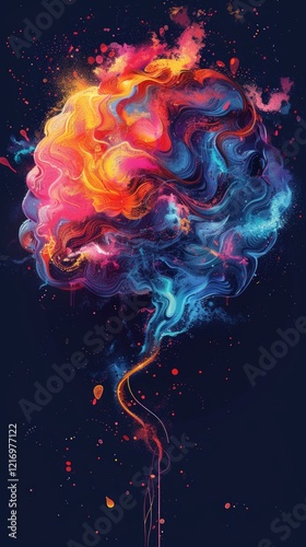 The watermark will not be included on Wall mural.: Bright abstract background with colored divorces in the shape of a brain - suitable for creative proj