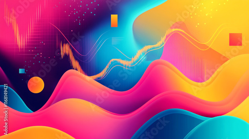 Wall mural : Bright advertising layout with playful shapes and dynamic geometric patterns, abstract geometric pat