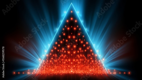 Wall mural bright blue and red triangle with many lights shining on it. the lights are arranged in a way that c - Wall murals Wall mural bright blue and red triangle with many lights shining on it. the lights are arranged in a way that c - Wall murals