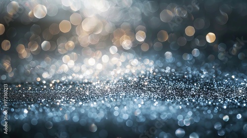 Wall mural : Bright blue bokeh glitter sparkles abstract background with soft light and subtle glow – ideal for c