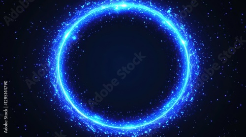 Bright blue circular light effect with sparkling particles in dark spaceWall mural