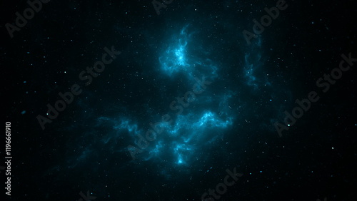 The watermark will not be included on Wall mural.: Bright blue nebula illuminates the vast expanse of space, surrounded by a backdrop of countless star