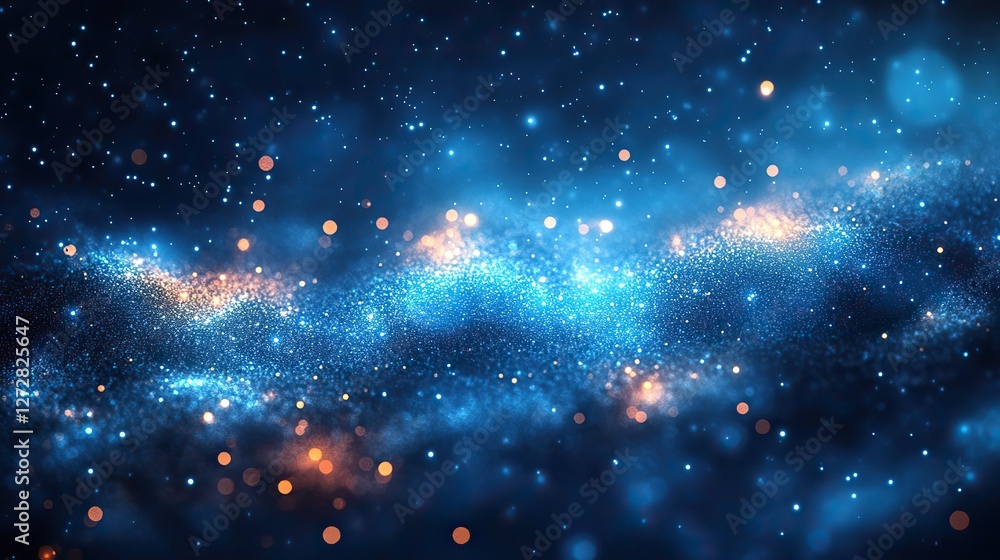 Wall mural : Bright blurred abstract blue bokeh lights on dark background creating a soft backdrop for elegant de