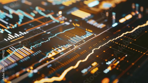 The watermark will not be included on Wall mural.: Bright digital data screens on a futuristic dashboard with graphical overlay and lights -