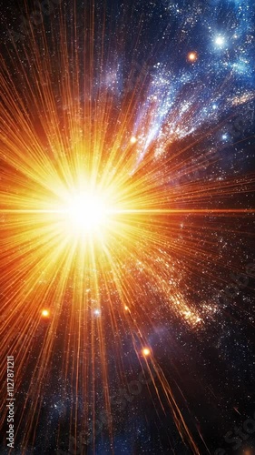 Wall mural bright explosion of light radiates in the cosmos surrounded by distant stars and galaxies at unknown - Wall murals Wall mural bright explosion of light radiates in the cosmos surrounded by distant stars and galaxies at unknown - Wall murals